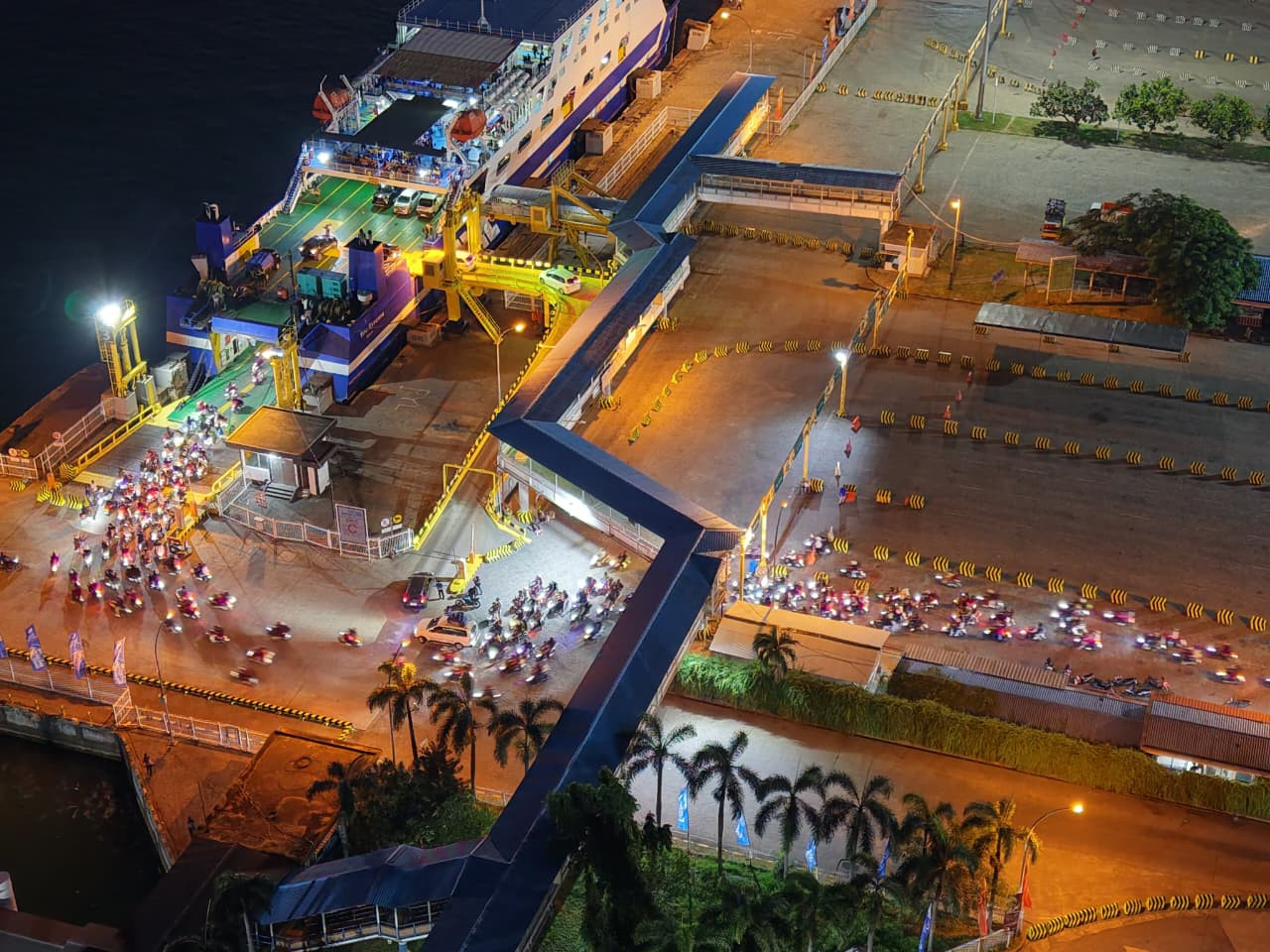 Dengan tingkat keterisian pelabuhan mencapai sekitar 90 persen, proses pemuatan kendaraan ke kapal tetap berlangsung lancar di seluruh dermaga.